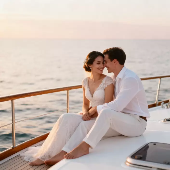 Фотографии, сделанные на борту яхты, отличаются особой роскошью и великолепием. В Москве, а также в Подмосковье можно найти много живописных островков, водоёмов и бухт, где в окружении чудесных пейзажей получатся красивые свадебные снимки.