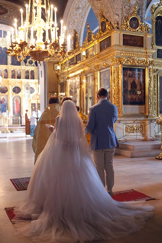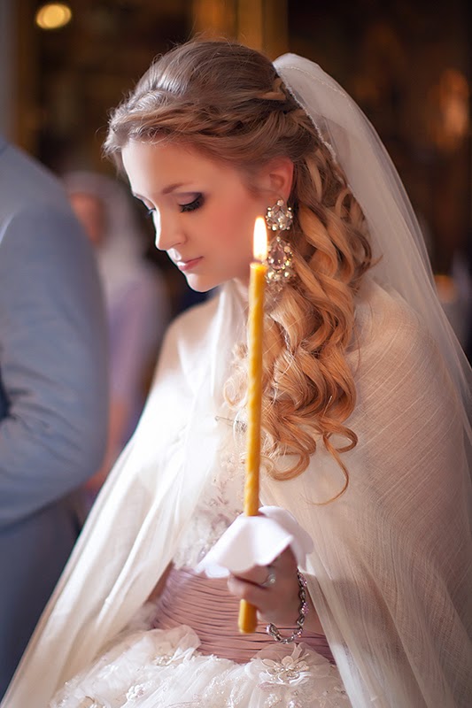 Будущей жене нельзя находиться в храме с открытыми плечами, декольте и неприкрытой головой. Обилие украшений также считается неуместным. Чтобы голова была покрытой, можно одеть фату либо платок. Если у вас слишком открытое платье, чтобы не переодеваться лишний раз, можете просто подготовить накидку на время церемонии. Макияж должен быть естественным и неброским. Воздержитесь от высоких каблуков. Лучше подберите удобную обувь, так как венчание может длиться несколько часов. И не забудьте по обручальные кольца, их нужно обязательно принести с собой.