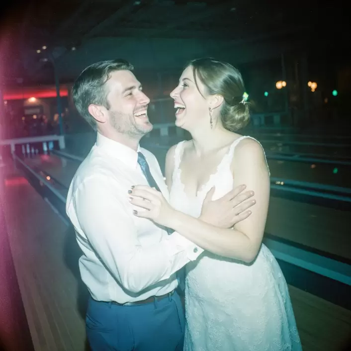 Такая идея отлично подойдёт молодоженам, которые в восторге от современных развлечений. Прямо в боулинг-клубе свадебный фотограф сможет подобрать удачные места и ракурсы для свадебной фотосъёмки.